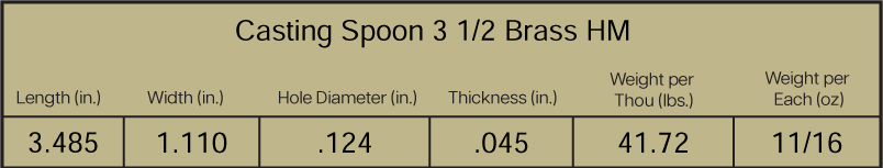 - Casting Spoon 3-1 / 2 .018 Sm Pol Brass