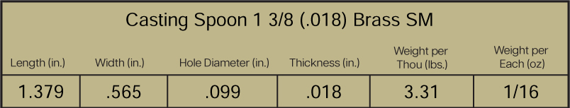 - Casting Spoon 1-3 / 16 .018 Sm Pol Brass