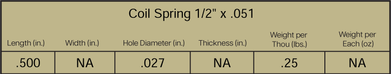 - Coil Spring 1 / 2 X 051 Stainless Steel