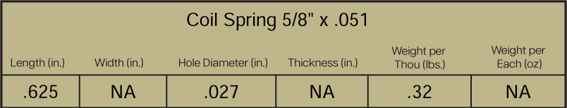 - Coil Spring 5 / 8 X 051 Stainless Steel