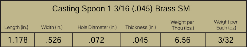 - Casting Spoon 1-3 / 16 .018 Sm Pol Brass